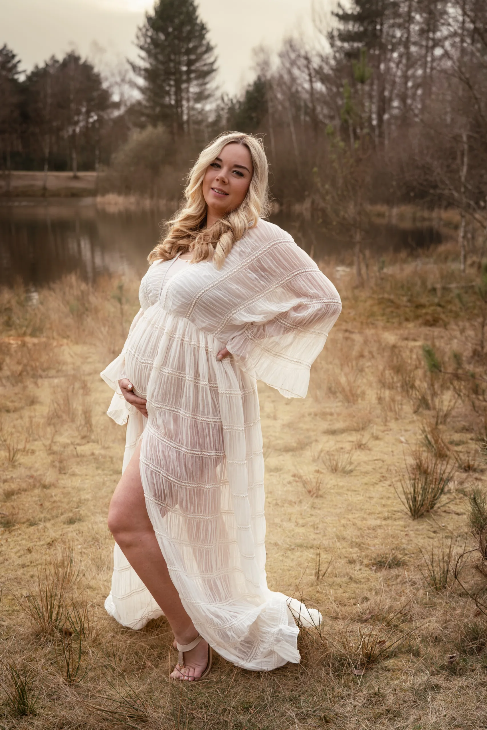 Ik begeleid je tijdens de hele shoot liefdevol, zacht, zonder gedoe. Je mag gewoon… zijn. Je hand op je buik leggen. Even lachen om dat schopje dat binnenin rond danst.